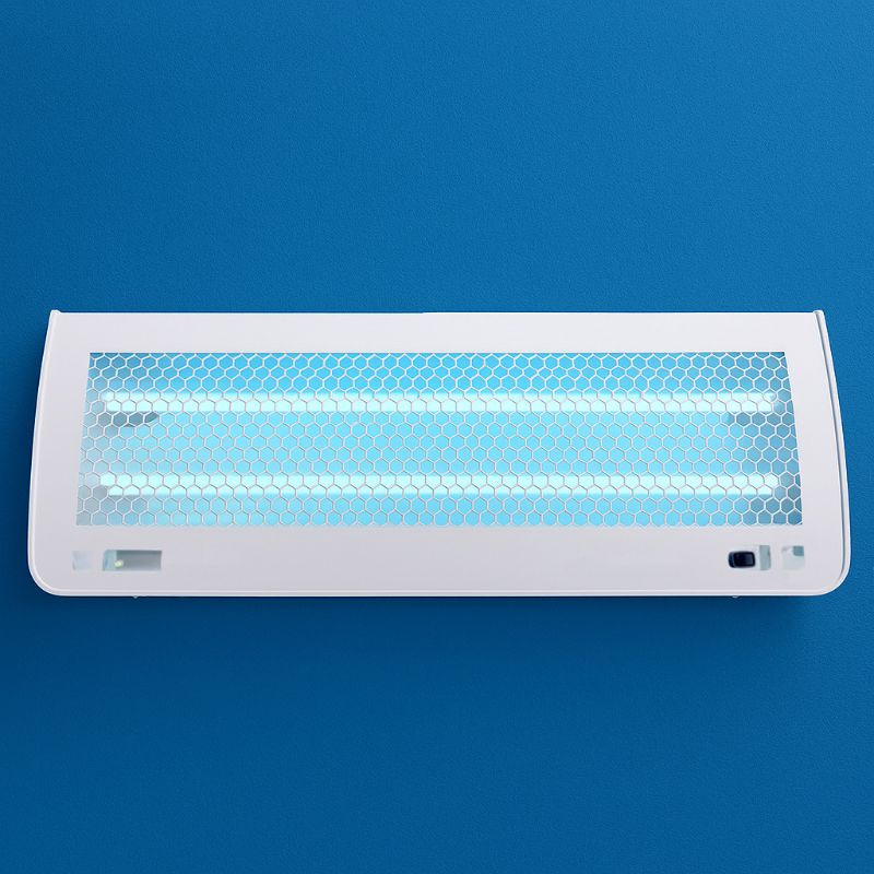 See ProductA Health Canada PMRA approved optimized, high-output Upper Air GUV solution, providing continuous air disinfection designed to reduce exposure to airborne pathogens to near zero levels.