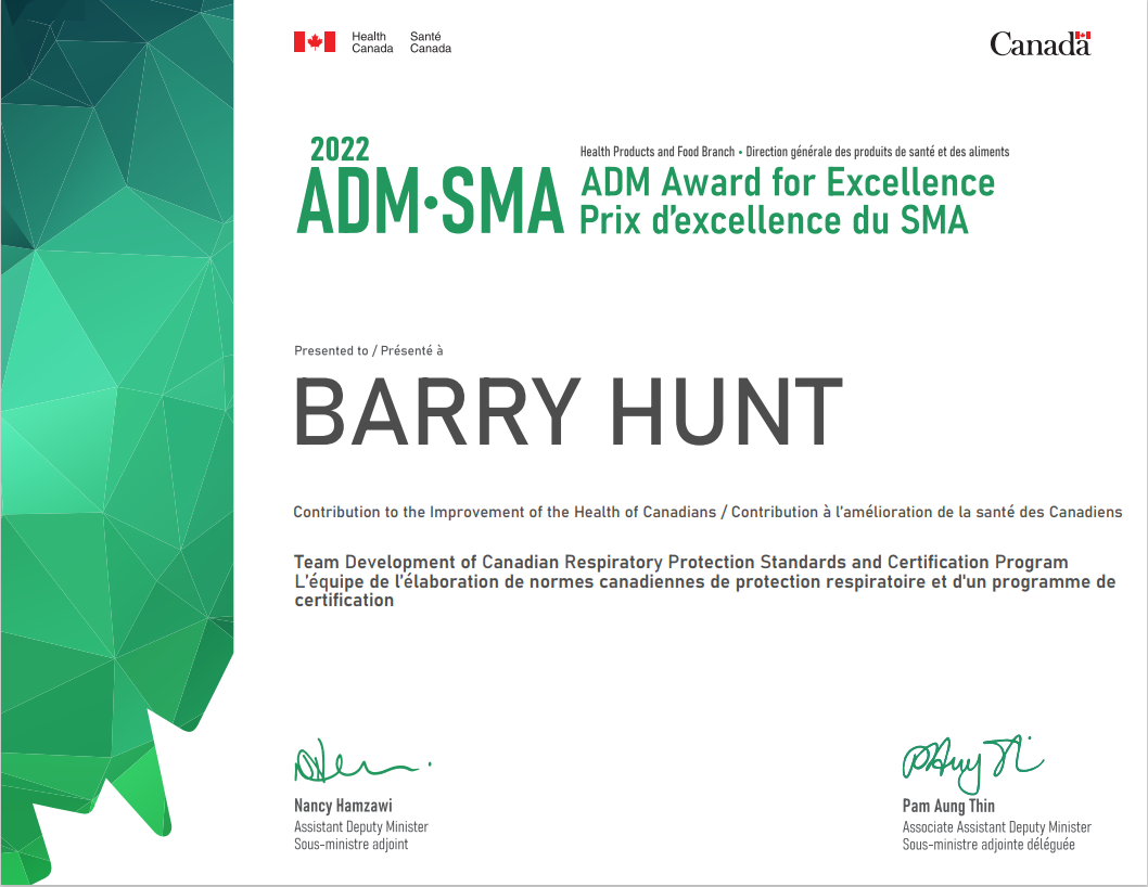 Our CEO @BarryHunt008 received the "ADM Award for Excellence - 2022" from @GovCanHealth - Health Products and Food Branch, for his "Contribution to the Improvement of the Health of Canadians".