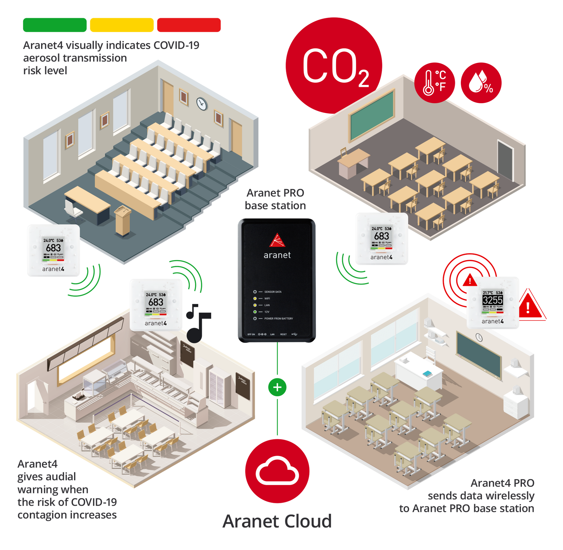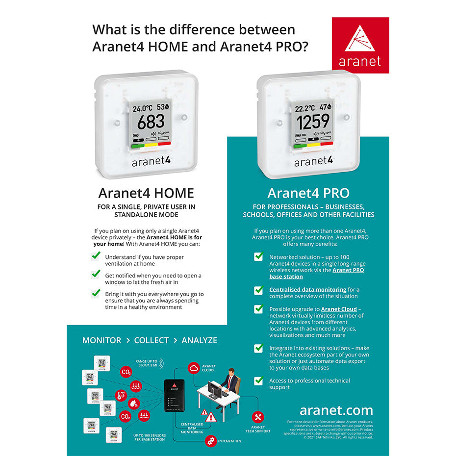 - Use multiple Aranet4 PRO devices in different locations and connect them to the base station and Aranet Cloud for centralized monitoring