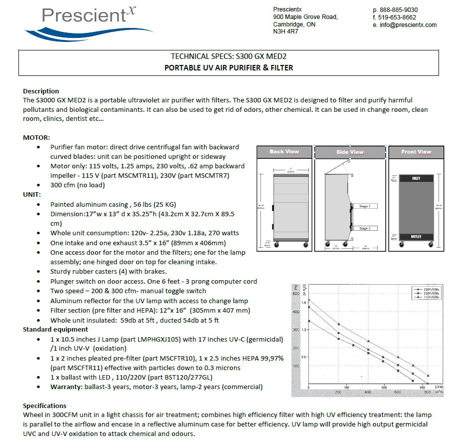 The S3000 GX MED2 is a portable ultraviolet air purifier with filters. The S300 GX MED2 is designed to filter and purify harmful pollutants and biological contaminants. It can also be used to get rid of odors, other chemical. It can be used in change room, clean room, clinics, dentist etc…