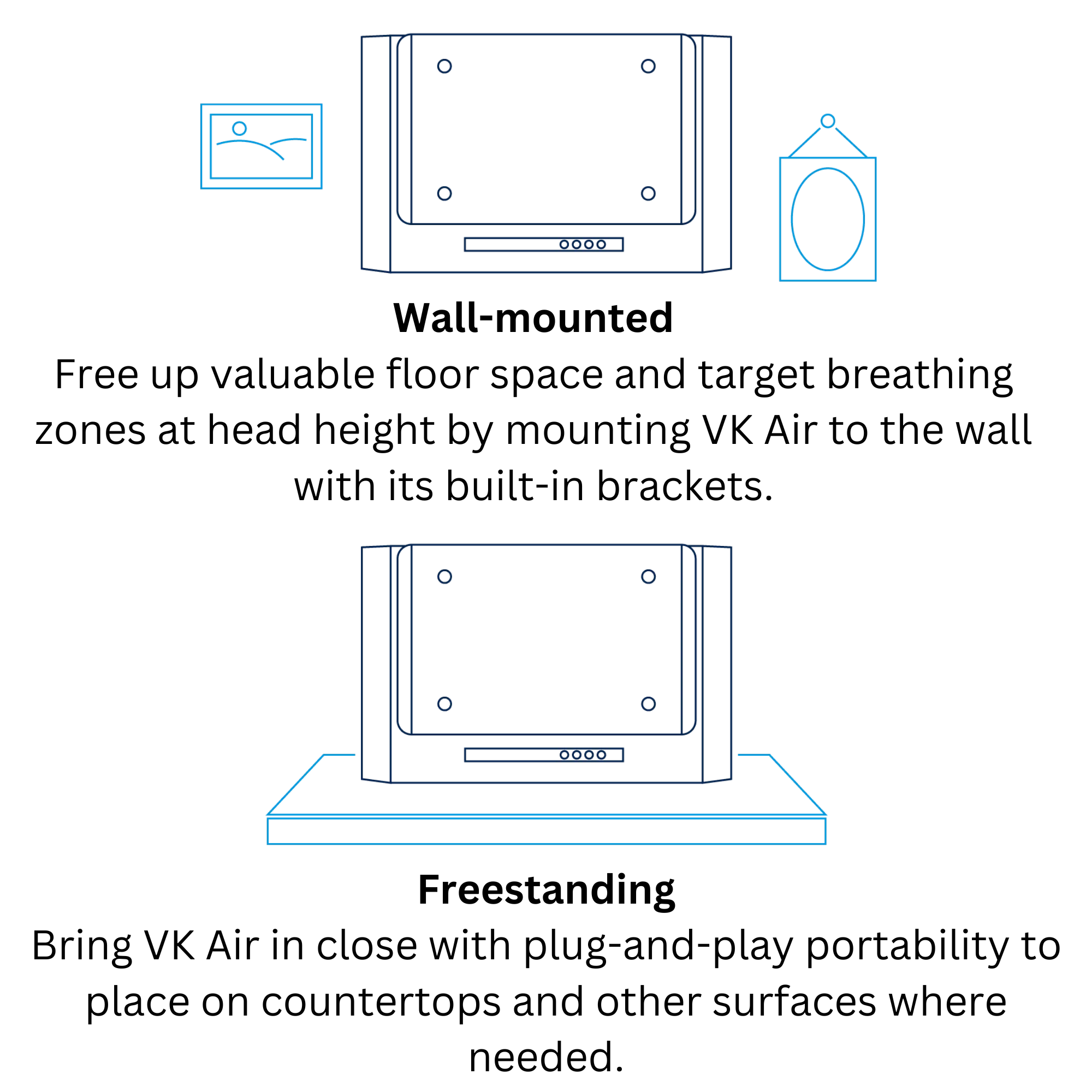 The VK AIR (VK 401) can be placed at head height where occupants of a room congregate, allowing for fast delivery of clean air directly where people can benefit.