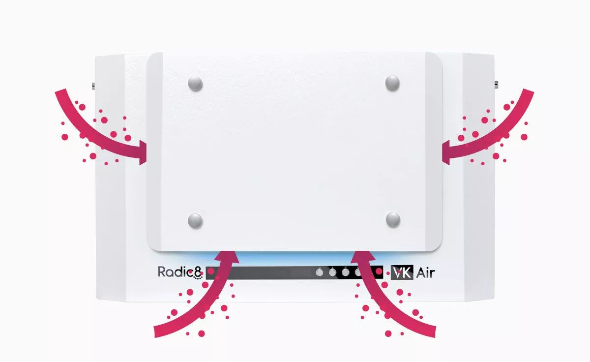 The VK AIR (VK 401) captures the most polluted air in a room by creating an airflow pattern that continuously draws contaminated air away from the breathing zone.