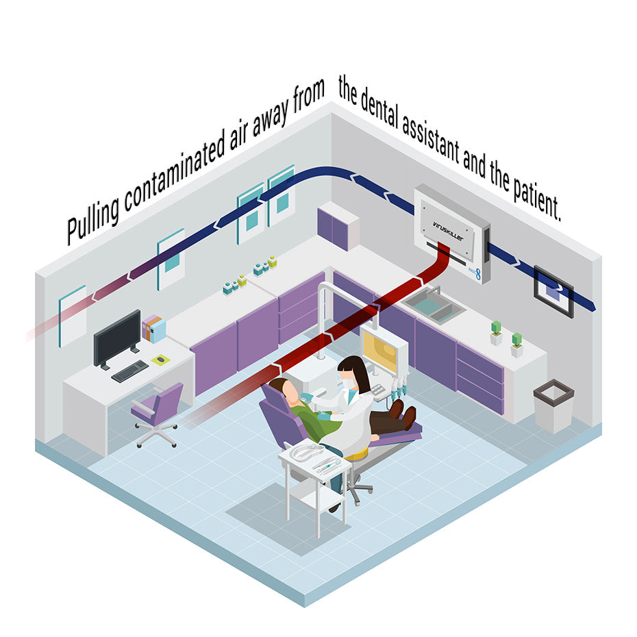 - Large air exchange capacity designed for operatories, sterilization centers, and small to medium waiting rooms